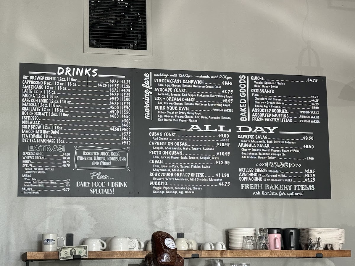 Welcome to DI Coffee Bar, a delightful gem nestled in Tampa's Heights neighborhood. This charming café offers a varied menu that caters to both coffee lovers and food enthusiasts alike. Start your day with a rich Café Con Leche ($5.25) or the smooth Cappuccino ($4.25). For those seeking something unique, try the Matcha ($5.00) or the robust Mocha ($6.00).